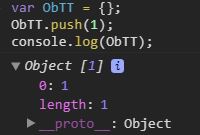 可以看到,在Object对象原型上增加数组的push和splice方法后,该对象之前的大括号也变成了数组的中括号,下面试试新增加的方法是否有效