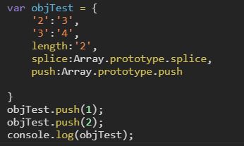 但这个时候,虽然有点像了,但还有两点没有做到,一就是这个时候仍然不能使用数组的方法,二就是该对象打印出来还是使用大括号,也就是仍然只是一个对象。下面给这个对象添加数组的方法试试,以push和splice连个函数为例。