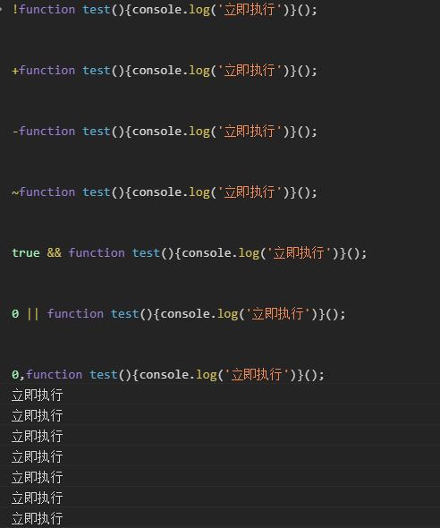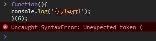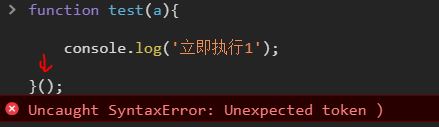 以上可以看出,普通的函数调用就是在函数名加括号运算符,立即指向函数也是在后面加括号,只不过是在函数体后加。所以看起来似乎只要在想要执行的函数后面加括号就能起到让函数立即执行的效果。