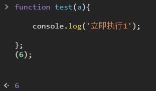 但是我们要注意的是,第一个看起来很像是要想立即执行函数(可能真实意图也是这样),并且没有报错,但是并不表示这个立即执行函数成功执行了,其实这个跟立即执行函数没有半点关系。另外从输出结果可以佐证,它并没有输出“立即执行1”,而是输出了6,这是为什么呢?