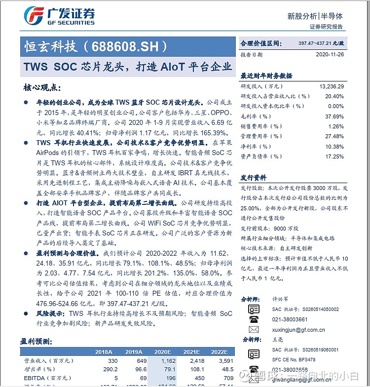 恒玄科技正式登陆科创板,股票代码为688608,是很“蚂蚁”的数字,发行价为162.07元/股。恒玄科技是智能音频SoC芯片设计商,其产品深入渗透到华为,魅族等高端TWS耳机品牌,被称为TWS第一股,市场反应很积极,早间开盘,恒玄科技股价大涨141%,报391元/股,首发不久即翻倍。
